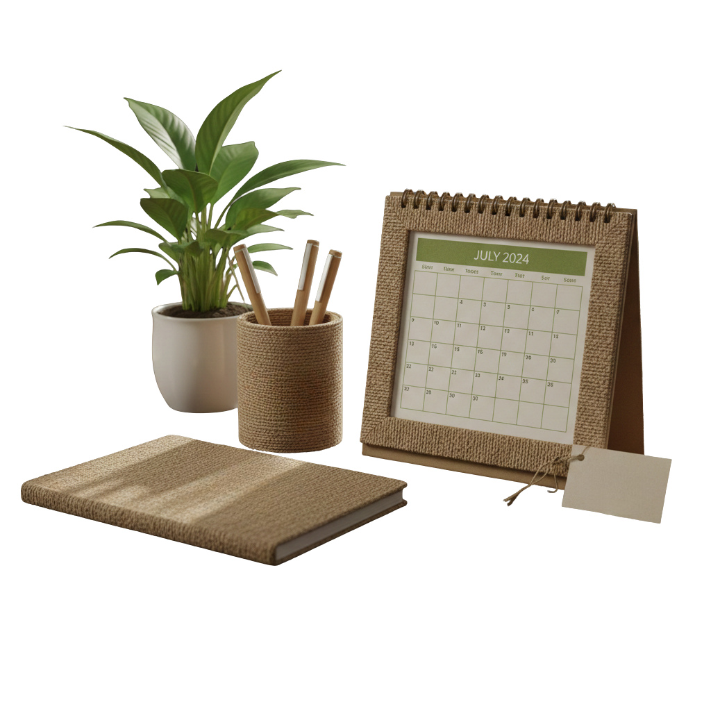 Curated for the eco-conscious professional, our Sustainability Gift Set brings warmth and organization to any desk. Handcrafted from 100% natural, biodegradable jute, this set blends rustic charm with modern functionality. It’s the perfect way to declutter your mind and your table while making a positive impact on the planet.